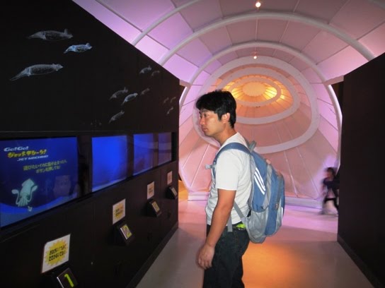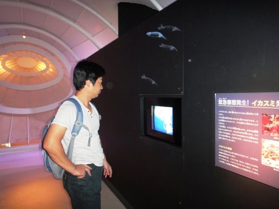 Next, we visited the corner named ika-paradise where a lot of information about squids is displayed. I got a bit tired of moving around and so I sat on a bench near the huge aquarium while hubby moved around inside the museum.