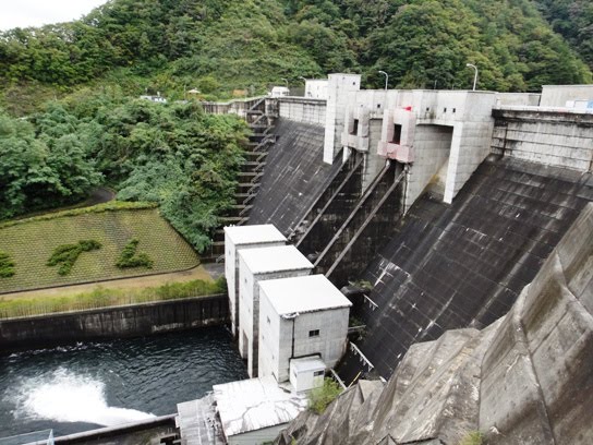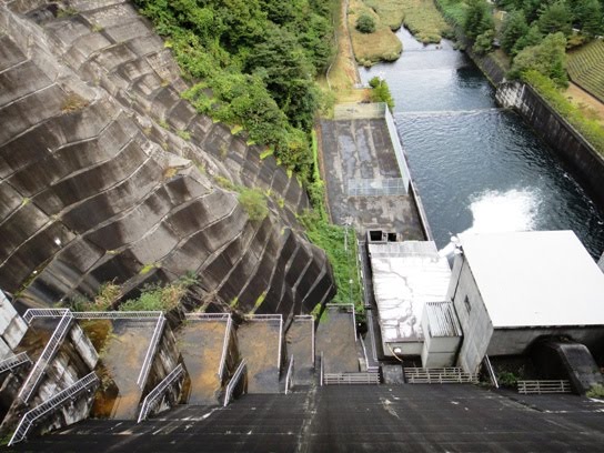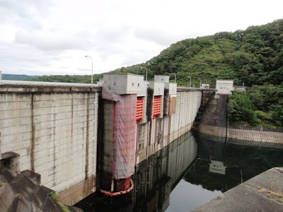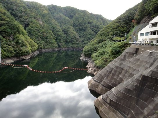 At about 10.30 am, we left Marient Museum and next visited Ryusendo Caves in Iwate prefecture. The caves are located about 110 kilometers south-east of Marient Museum and it took us almost 3.5 hours to reach there by our car. After about 100 minutes of driving on the mountainous road, we saw a beautiful dam named Taki Dam located in Kuji city of Iwate prefecture. Hubby stopped the car and we enjoyed viewing the dam and the surrounding nature. The walls of Taki Dam are 70 meters high and the crest length is 187 meters. It is a concrete gravity dam and was constructed in 1982. The dam is located on Osanai River of Kuji River System. The place was very quiet and serene. There was no one around and we walked across the dam and enjoyed the beautiful view around us.
