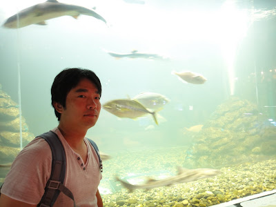 I am standing in front of the aquarium