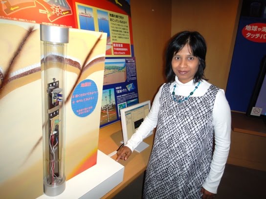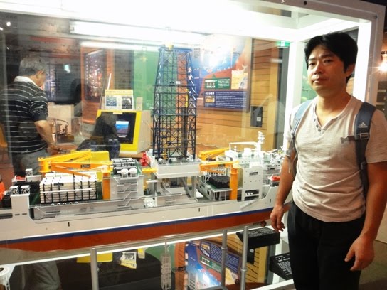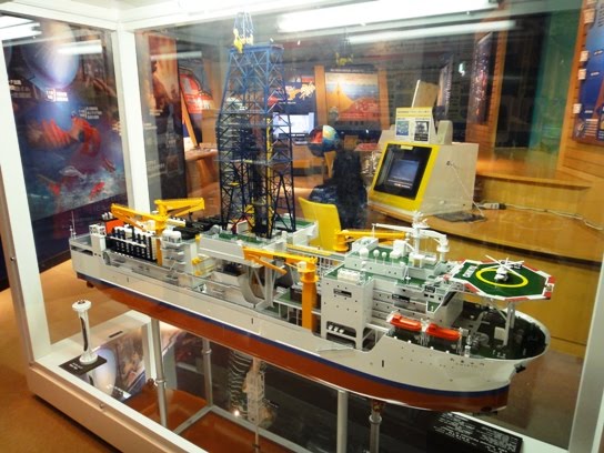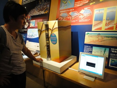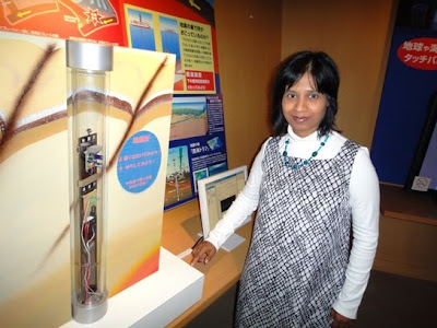 There is a section inside the museum that gives information about the internal earth and the deep ocean world with a variety of information materials and videos. A model of the deep sea drilling vessel named Chikyu scaled to 1/100 of the original is kept in this section. The vessel is 210 meters long and can accommodate 150 persons. Presently, the vessel has a drilling capability of 2500 meters. In addition, an instrument that can detect vibrations inside earth is also exhibited. It was fun to tap the instrument and observe the effects of vibrations on a computer screen.