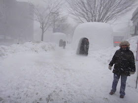 I am standing near the entrance of the shrine. Note that the alcoves are carved throughout the snow wall.